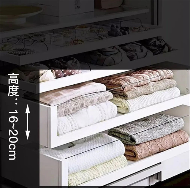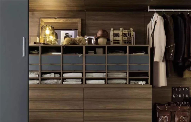 大件区主要就是分格,即带格子的叠放区。衣帽间中开放式的分格设计更适合被褥、箱包、枕头、靠包的存放。将衣帽间上部的大空格腾出专为被褥、毛毯、坐垫、沙发套、窗帘等物品叠放之用。