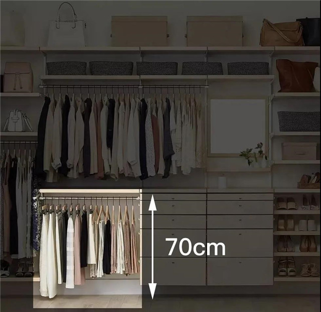 其实按照上述各个功能区,分门别类的摆放,一般整体效果不会太差。但是为了追求完美,我们进一步来剖析其具体的技巧规划,从而使衣帽间达到更为理想的视觉效果。